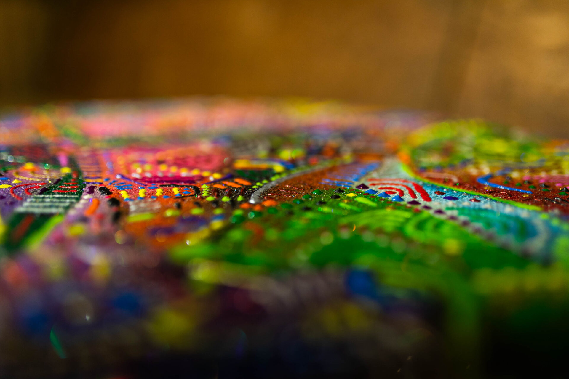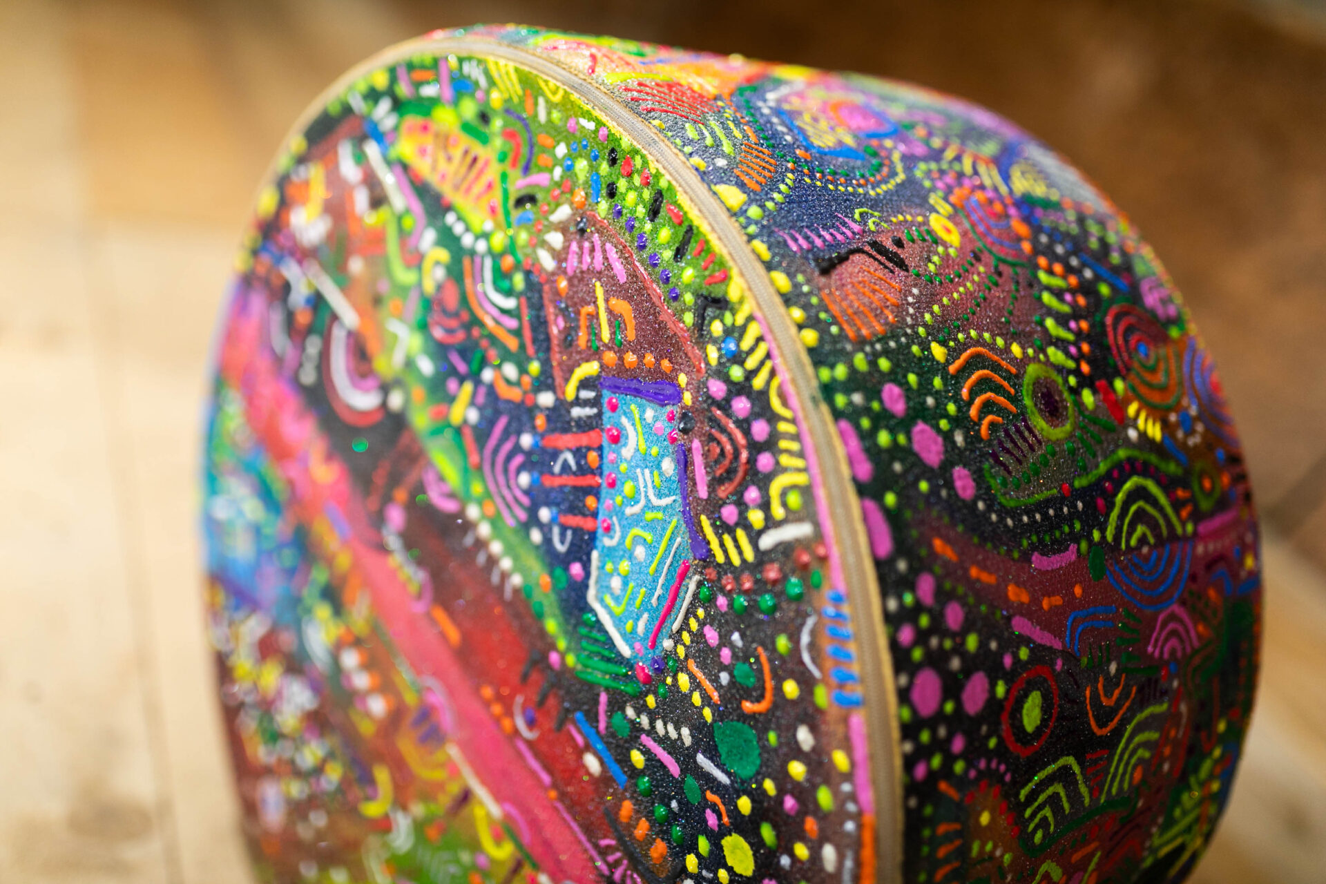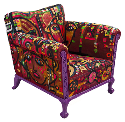 Here you are! Here you can see some of my artworks. My painting technique is based on dimensionality, large ensembles and tiny details, lines, arcs and dots, translucent and jewel-like elastic colors. I paint on soft and hard materials alike, and create art from, e.g., furniture, appliances, machines, tools, clothes, accessories and vehicles. My art can transform an airplane or chainsaw as well as a high heel or a judge’s gavel.