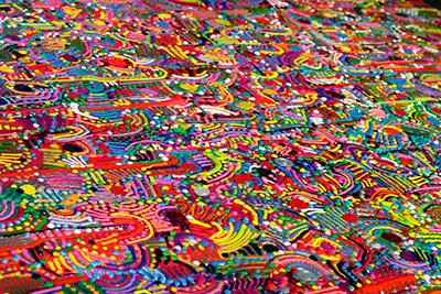 Ole hyvä! Täältä näet pienen esimerkkierän taiteellisesta tuotannostani. Maalaustekniikkani pohjaa monikerroksellisuuteen, suuriin kokonaisuuksiin ja niiden pieniin yksityiskohtiin, viivoihin, kaariin ja pisteisiin, valoa kuultaviin ja korumaisesti hehkuviin elastisiin väreihin. Maalaan niin koville kuin pehmeille materiaaleille ja taiteeksi taipuvat mm. huonekalut, koneet, laitteet, tekstiilt, työkalut, vaatteet, asusteet tai vaikkapa kulkuneuvot. Yhtä hyvin niin lentokone, moottorisaha, korkokenkä kuin vaikkapa puheenjohtajan nuija sopivat maalausteni pohjiksi.